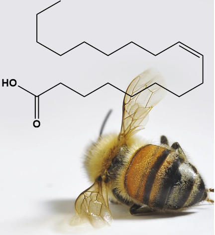 U sociálne žijúceho hmyzu býva mŕtvy jedinec z hniezda odstránený až vtedy, keď sa pri rozklade jeho tela začne uvoľňovať špecifický pach, najčastejšie spôsobený kyselinou olejovou (obr. 10), ktorá je označovaná ako pohrebný feromón. Týmto spôsobom sa v hniezde udržiava hygienická kontrola.