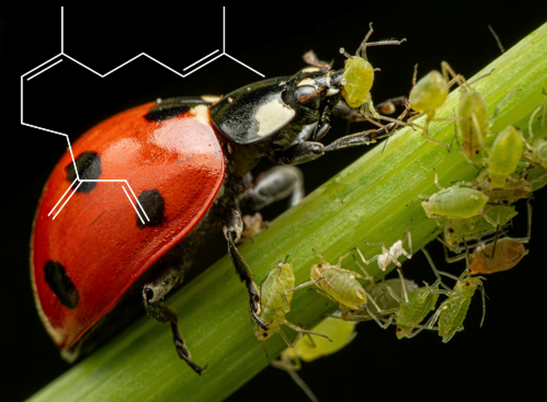 U vošiek čeľade Aphidoidea pozorujeme poplašný feromón (E)-β-farnesén (obr. 8), ktorý ich chráni pred predátormi, akými sú napríklad lienky.